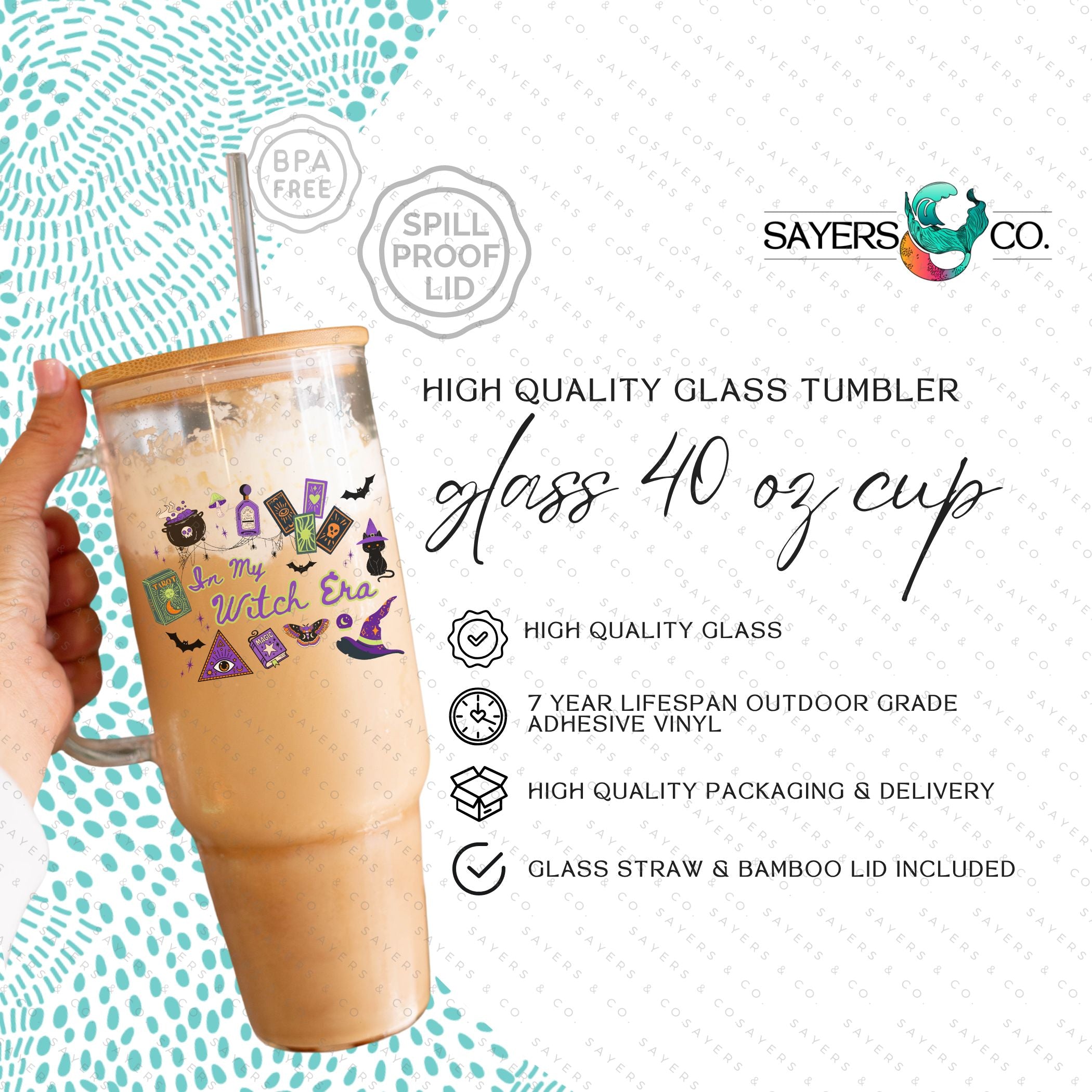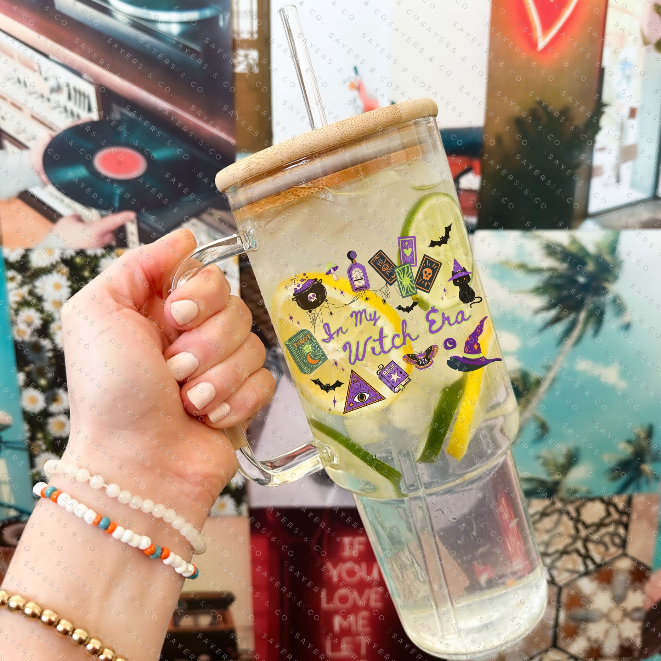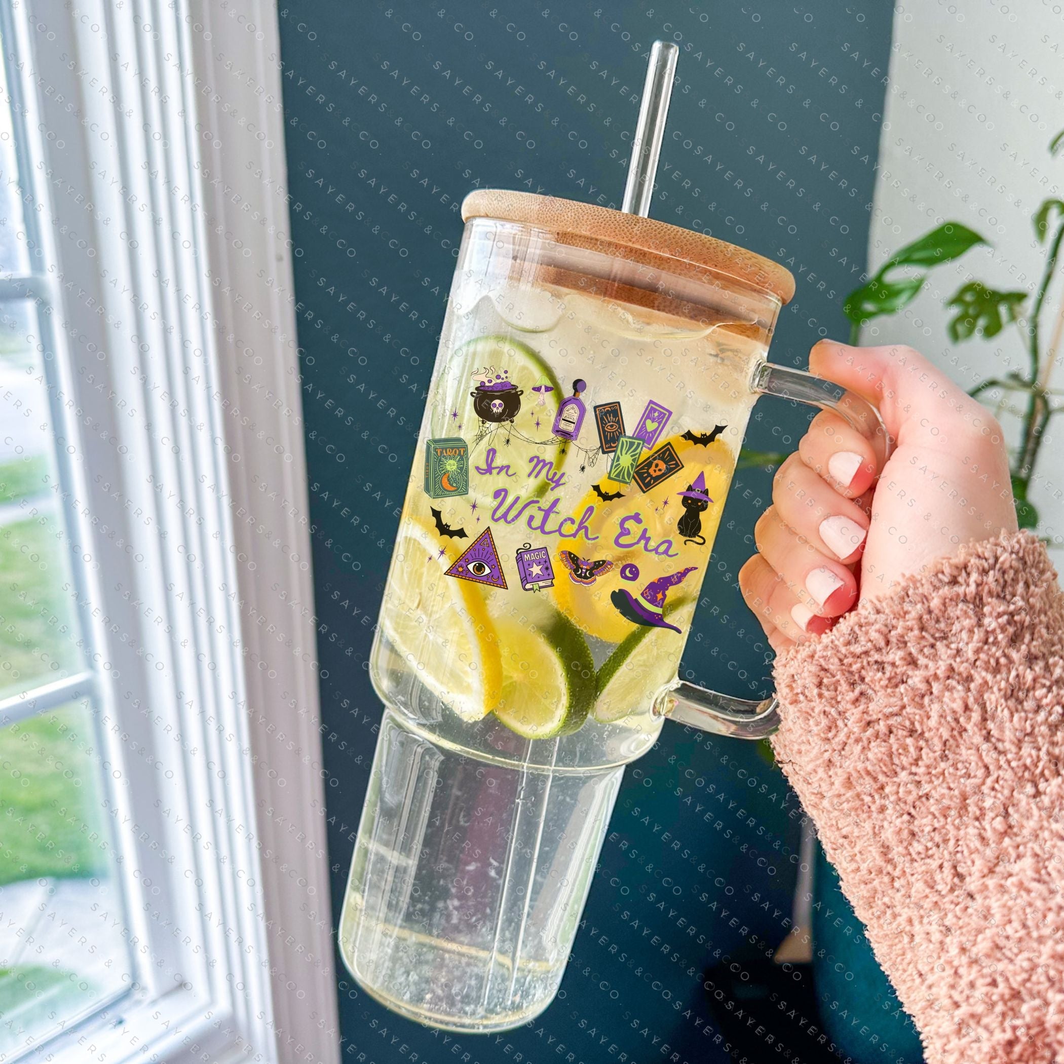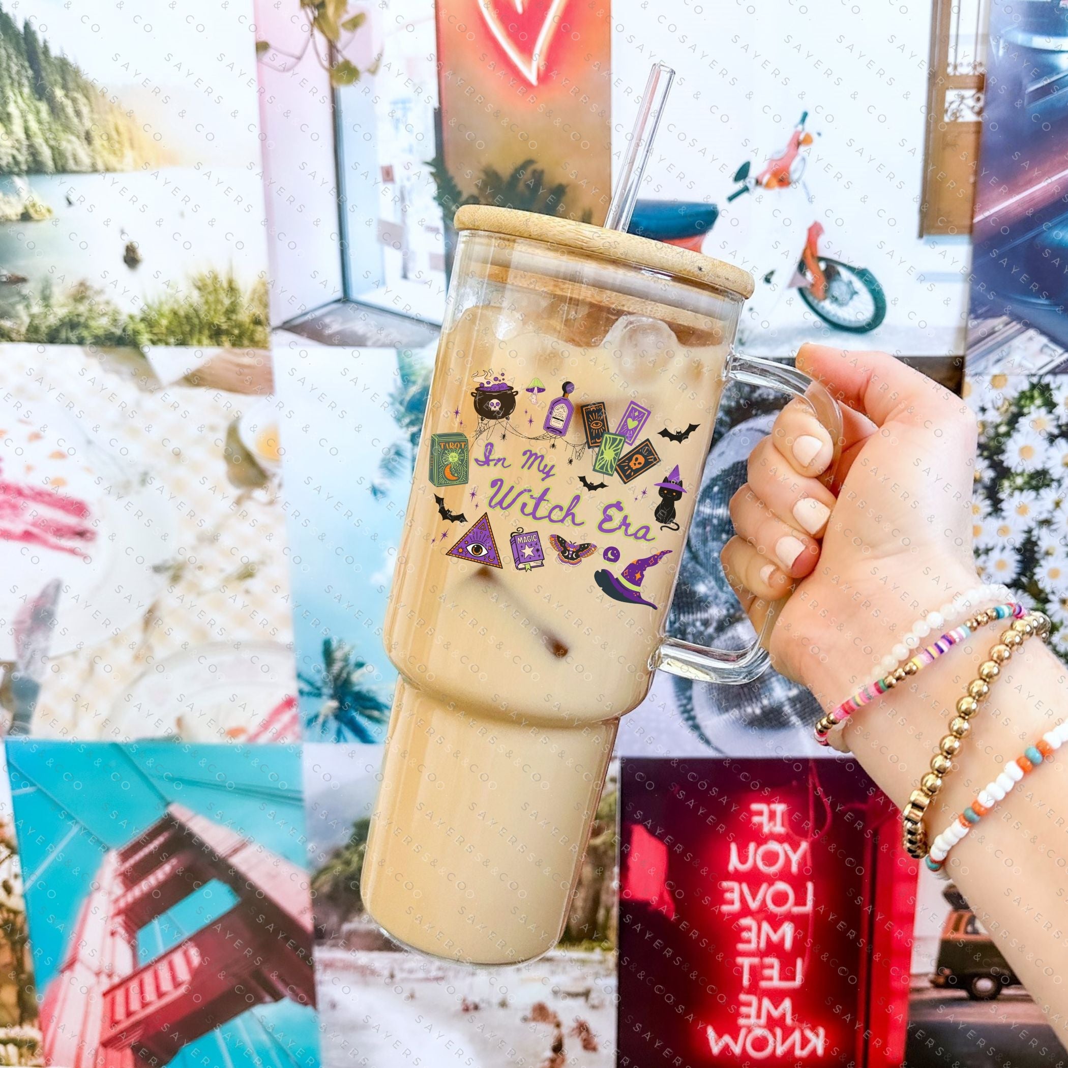 40oz In My Witch Era Green Cup Iced Coffee Glass Can, Witch glassware, witch drinkware, quirky mugs, halloween lover gifts, halloween graphics, unique glass tumblers, novelty cups, fall gift, fall gift ideas, fall themed tumbler, halloween themed tumbler, halloween tumbler, gift for friend, coffee lover gifts, witch Tumbler, witch cup, gift for someone who loves halloween, halloween gift, Mug with Bamboo Lid & Straw #100352