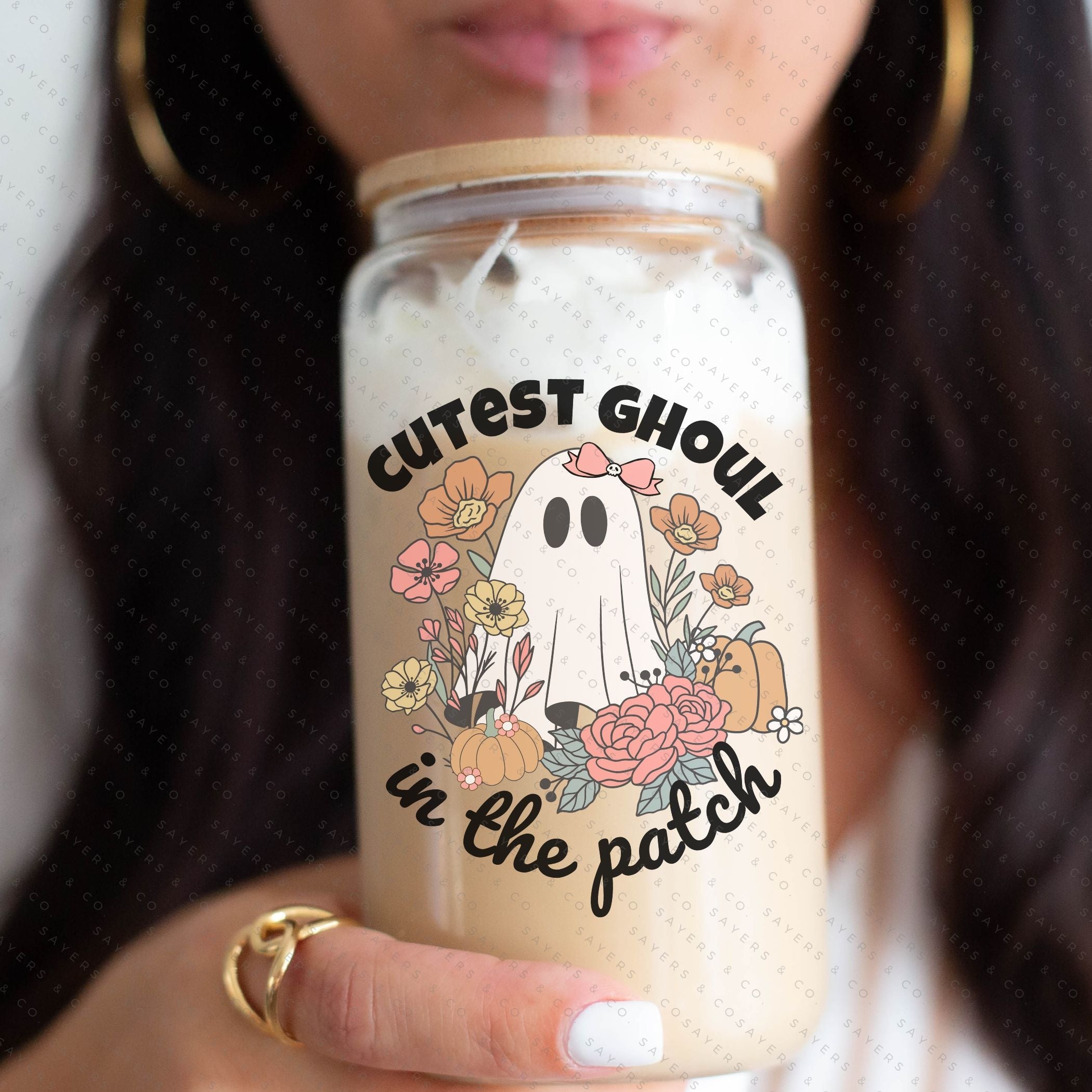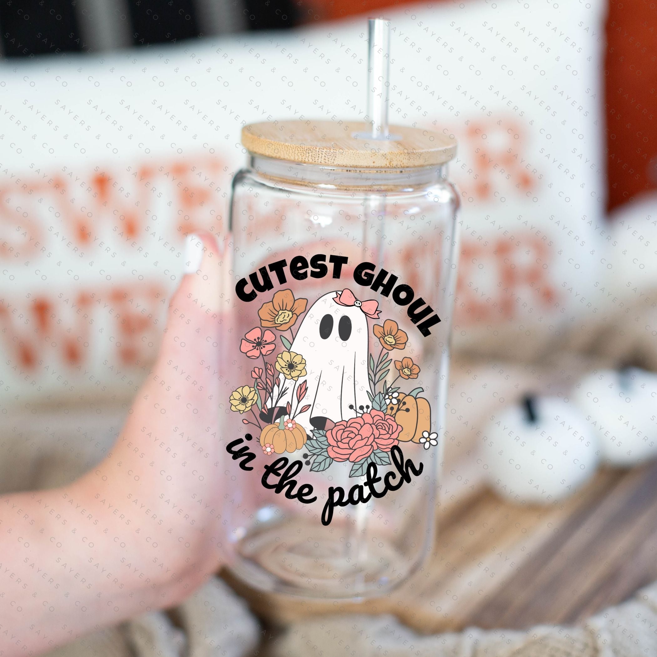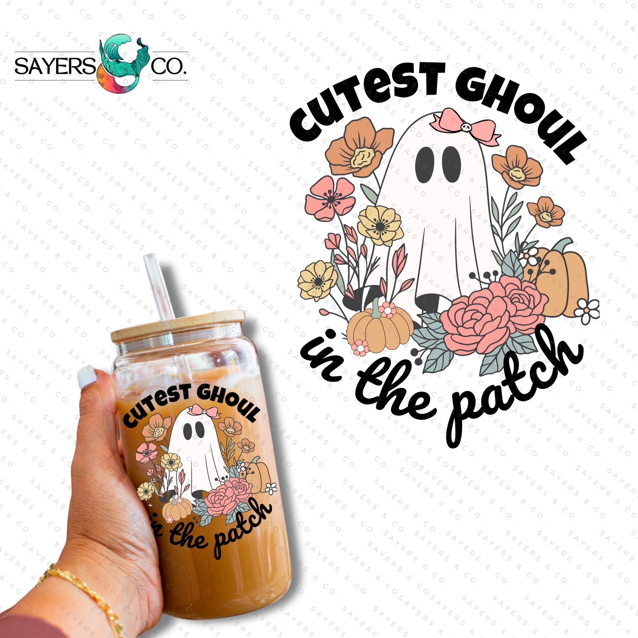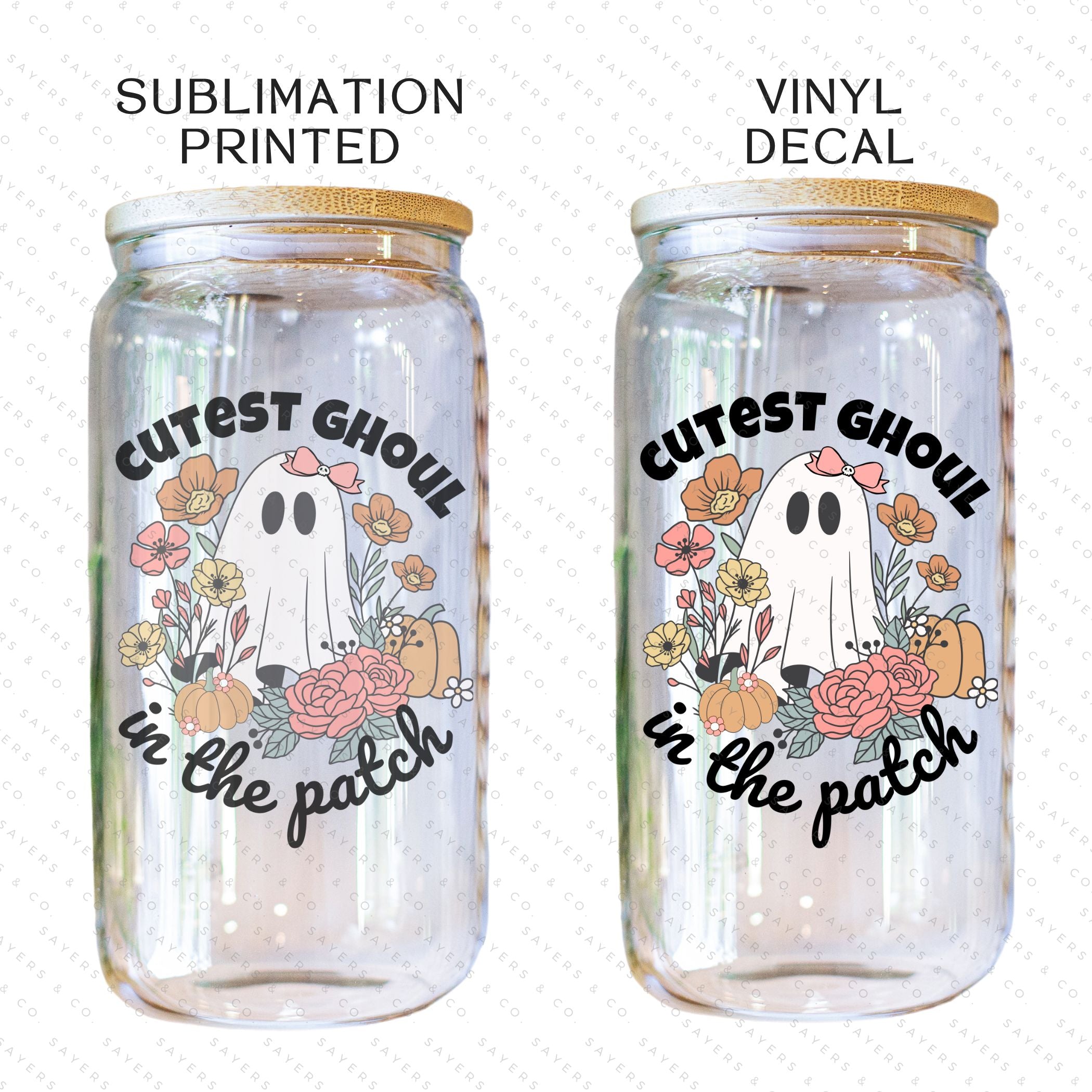 PRINTED Sublimation Transfer or Vinyl Print: Ghoul In The Patch Tumbler, cute ghost glassware, ghost drinkware, quirky mugs, ghost lover gifts, halloween graphics, unique glass tumblers, novelty cups, fall gift, fall gift ideas, fall themed tumbler, halloween themed tumbler, cute ghost tumbler, gift for friend, halloween tumbler, ghoul tumbler, gift for someone who loves halloween, fall gift, halloween lover gift, ghost tumbler, ghoul lover cup, Seasonal 16oz, sublimation print, sublimation transfer, vinyl print, vinyl transfer #100350