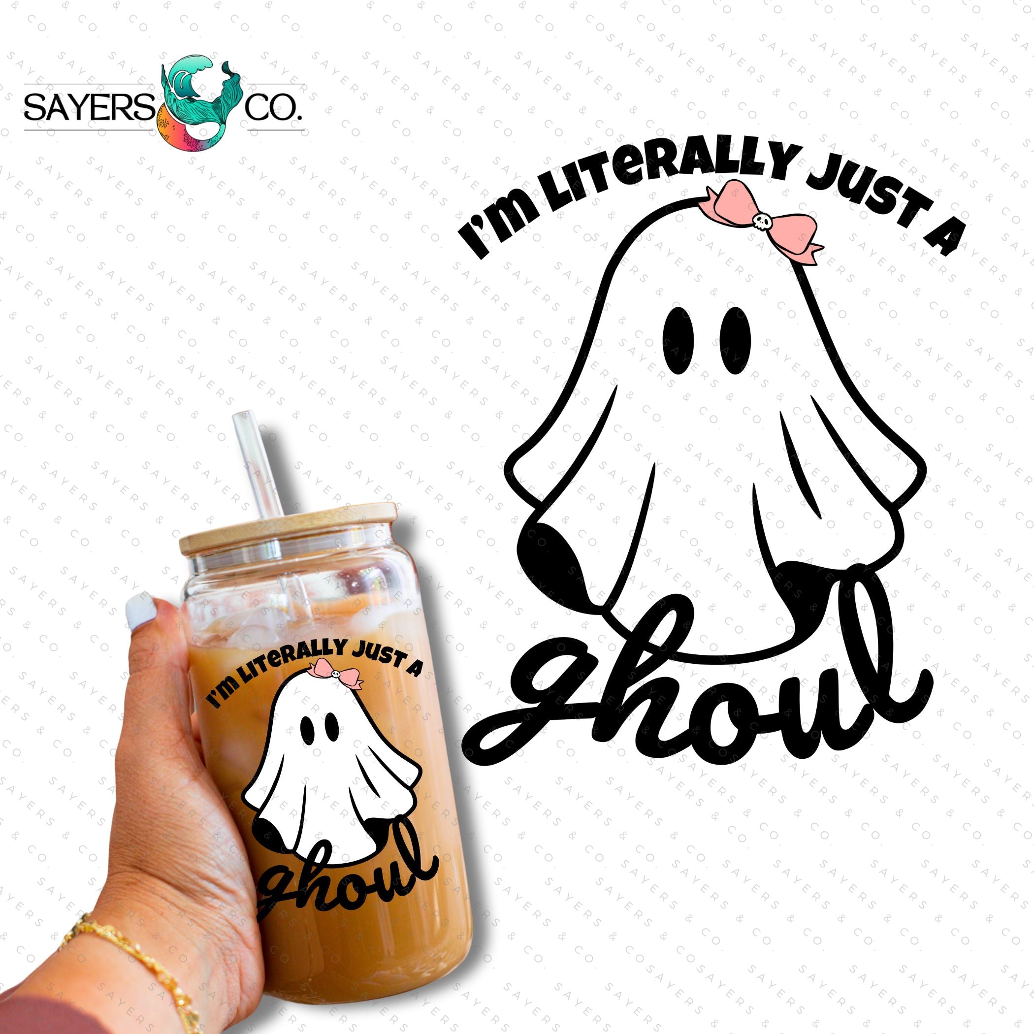 PRINTED Sublimation Transfer or Vinyl Print: I'm Literally Just A Ghoul Tumbler, cute ghost glassware, ghost drinkware, quirky mugs, ghost lover gifts, halloween graphics, unique glass tumblers, novelty cups, fall gift, fall gift ideas, fall themed tumbler, halloween themed tumbler, cute ghost tumbler, gift for friend, halloween tumbler, ghoul tumbler, gift for someone who loves halloween, fall gift, halloween lover gift, ghost tumbler, ghoul lover cup, Seasonal 16oz, sublimation print, sublimation transfer, vinyl print, vinyl transfer #100347