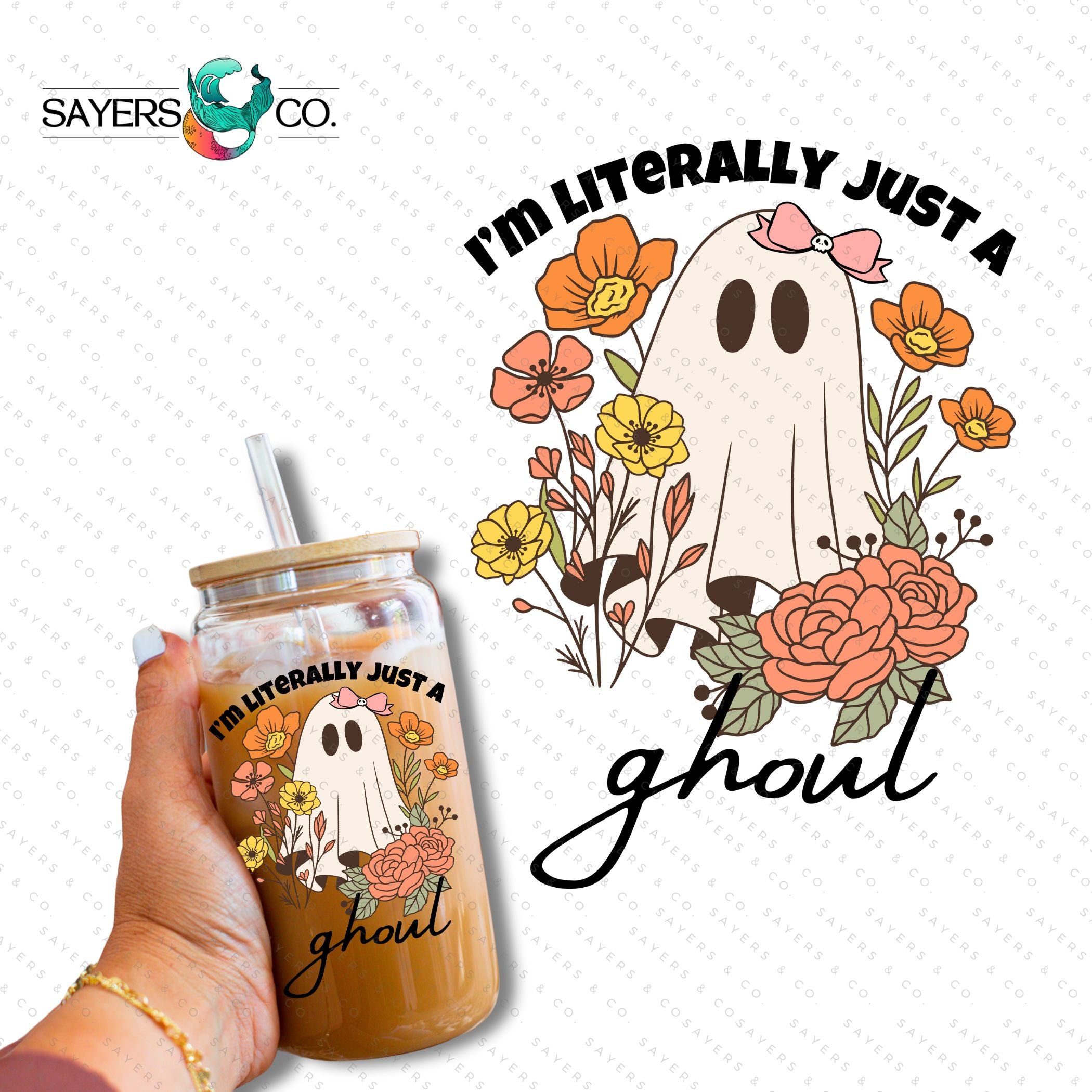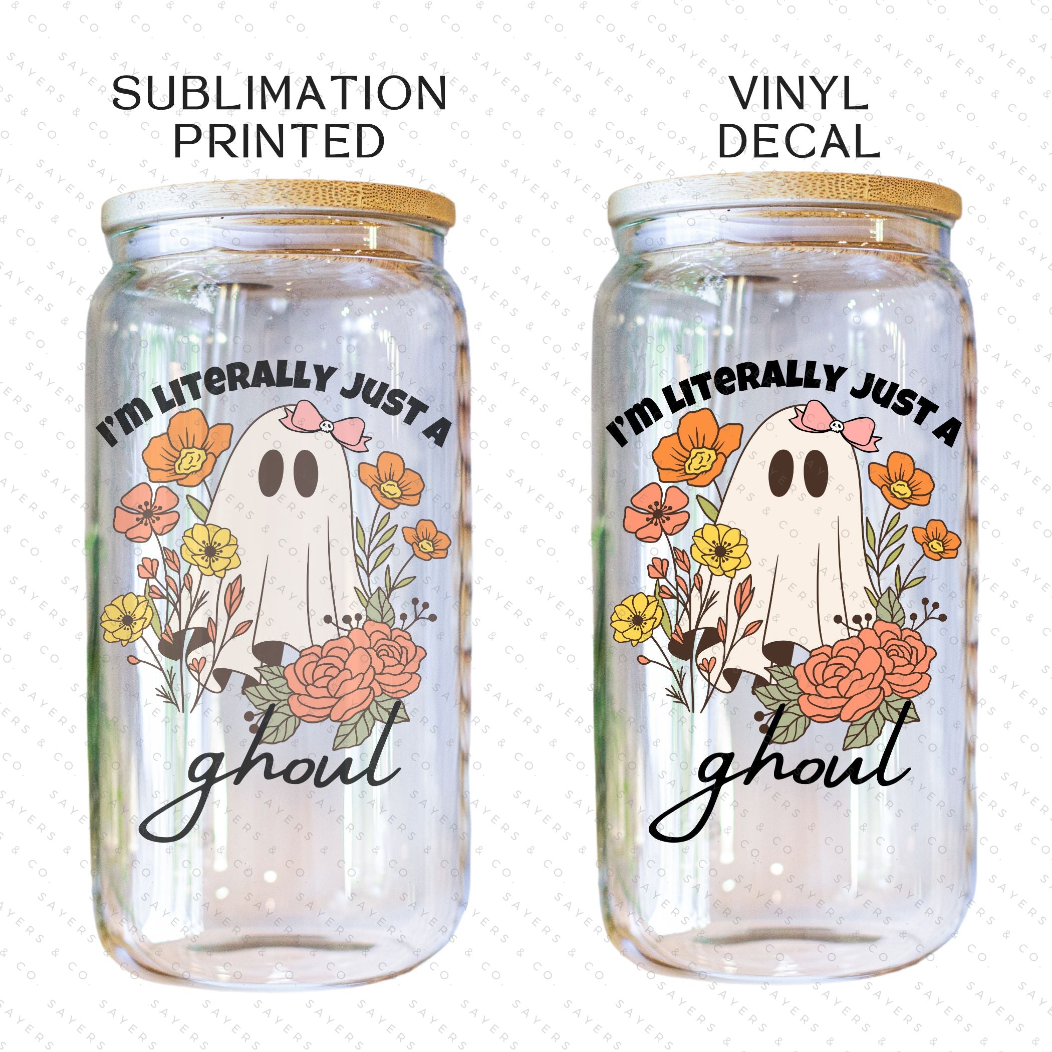 PRINTED Sublimation Transfer or Vinyl Print: I'm Literally Just A Ghoul Tumbler, cute ghost glassware, ghost drinkware, quirky mugs, ghost lover gifts, halloween graphics, unique glass tumblers, novelty cups, fall gift, fall gift ideas, fall themed tumbler, halloween themed tumbler, cute ghost tumbler, gift for friend, halloween tumbler, ghoul tumbler, gift for someone who loves halloween, fall gift, halloween lover gift, ghost tumbler, ghoul lover cup, Seasonal 16oz, sublimation print, sublimation transfer, vinyl print, vinyl transfer #100346